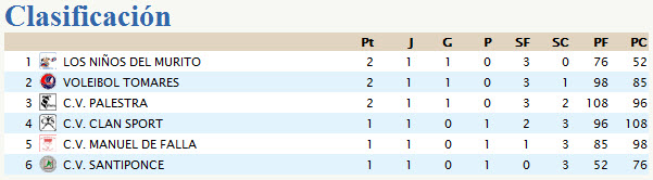La próxima jornada (23-Nov.) que inicialmente se deberia jugar en el pabellón del C.V. Palestra pasará a disputarse en el Pabellón de Santiponce, respetando los horarios que en el calendario están reflejados.