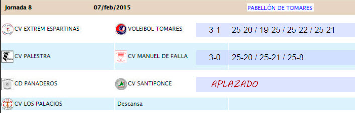 RESULTADOS DE LA 8ª JORNADA DE LIGA:
