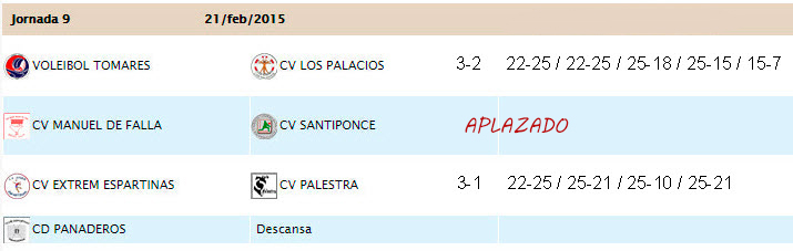 RESULTADOS DE LA 9ª JORNADA DE LIGA: